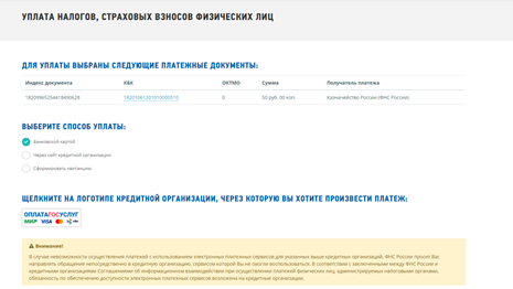 Так же Вы можете оплатить налог онлайн выбрав способ уплаты «Банковской картой»